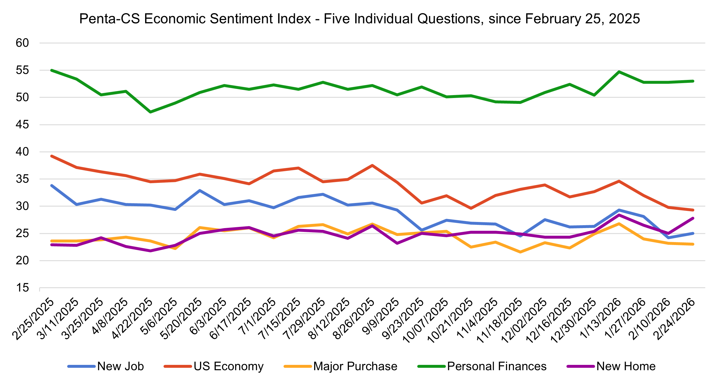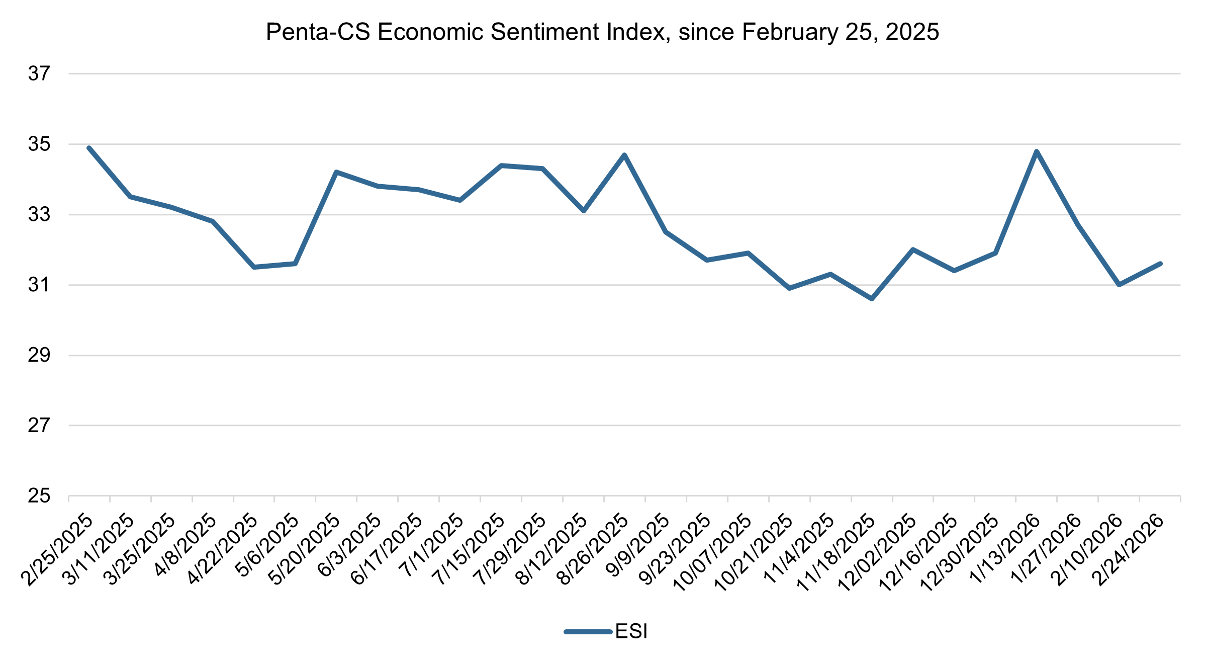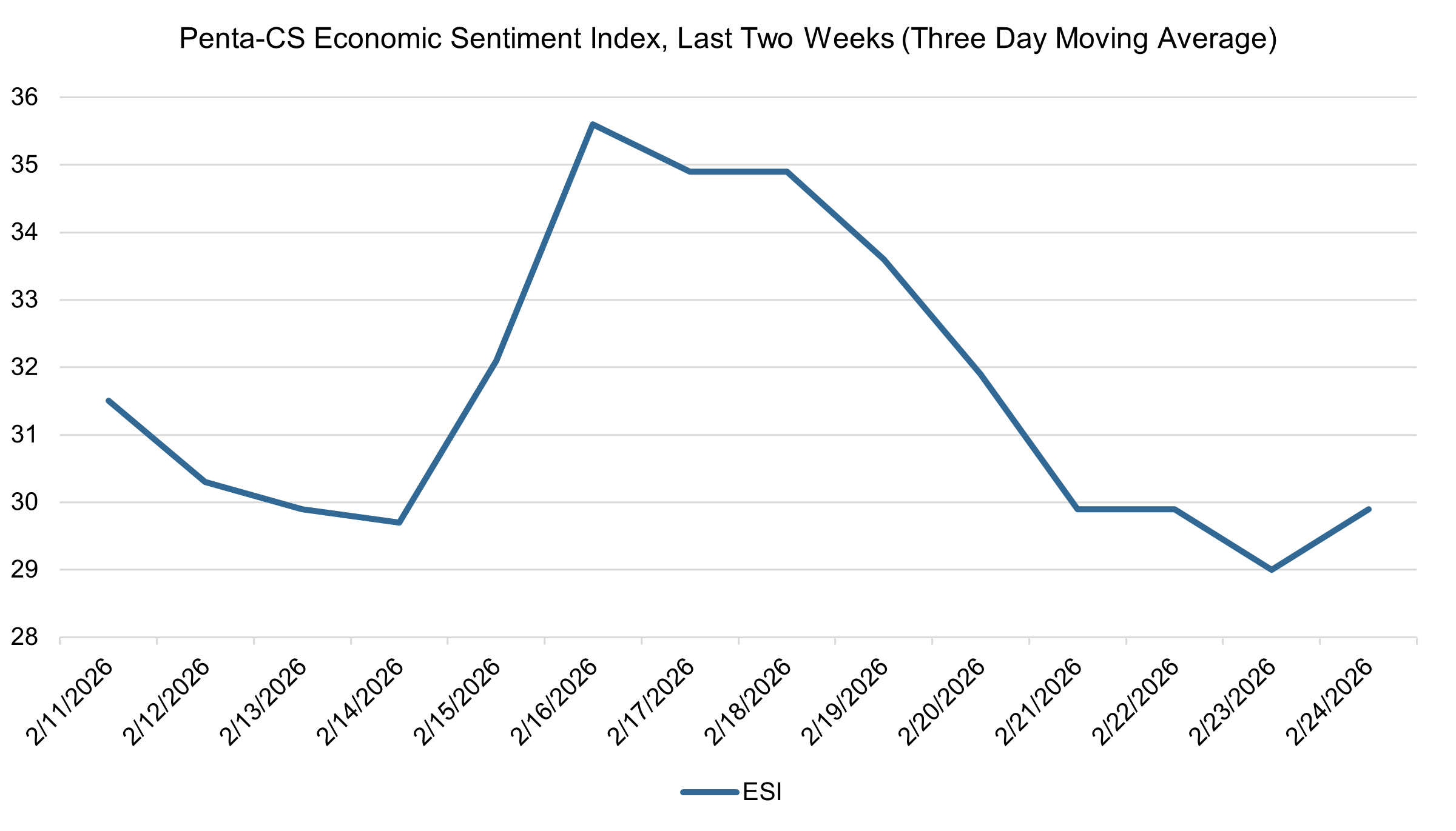 The latest biweekly reading of the Penta-CivicScience Economic Sentiment Index (ESI) rose by 0.6 points to 31.6, reversing the downward trend of the previous two periods and bolstered by a one-year high in confidence in buying a new home.